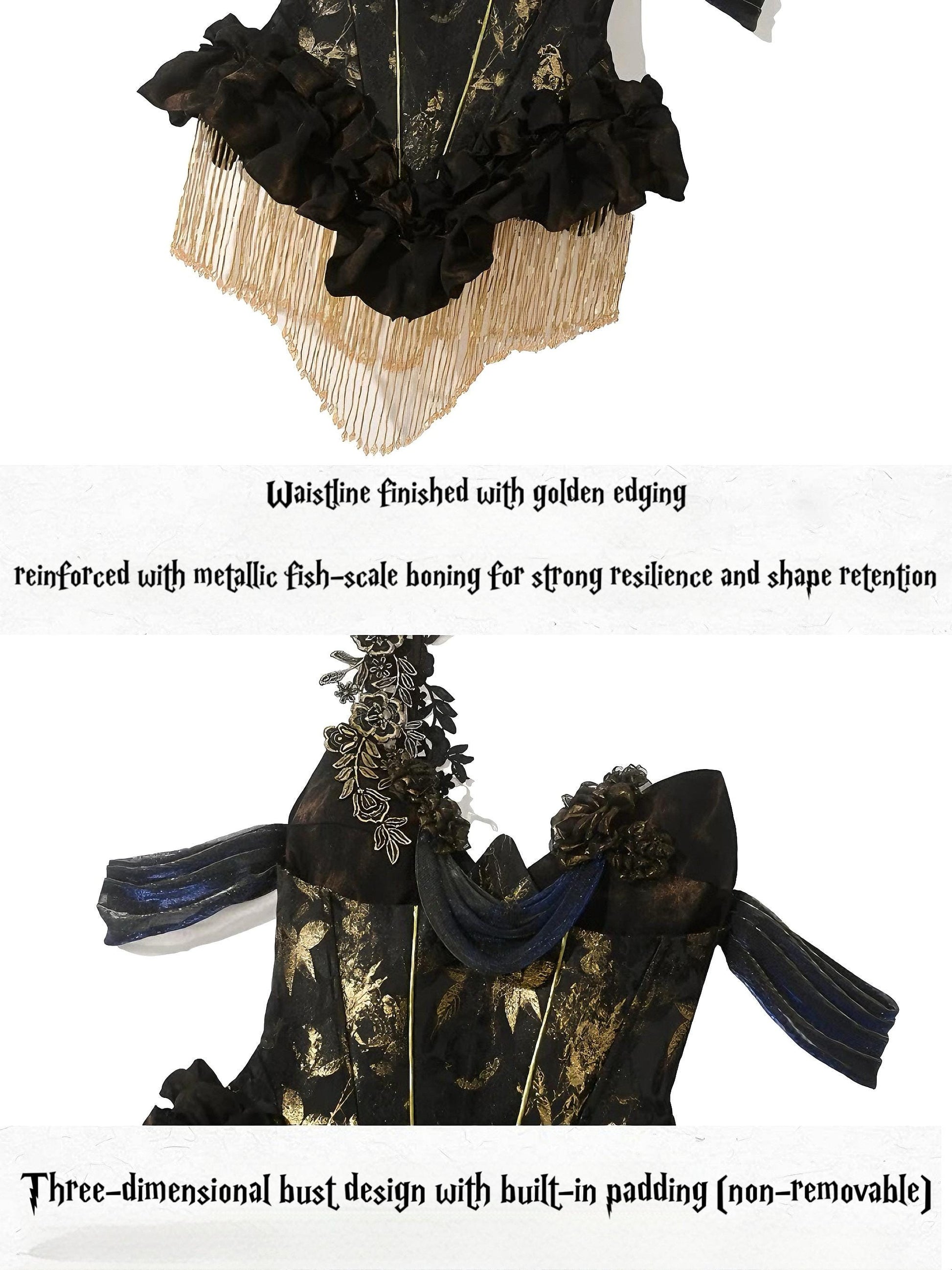 Golden Time Gothic Corset Dress, Baroque Gold Renaissance Gown, Victorian Masquerade Costume, Dark Romance Party Outfit, Retro Queen