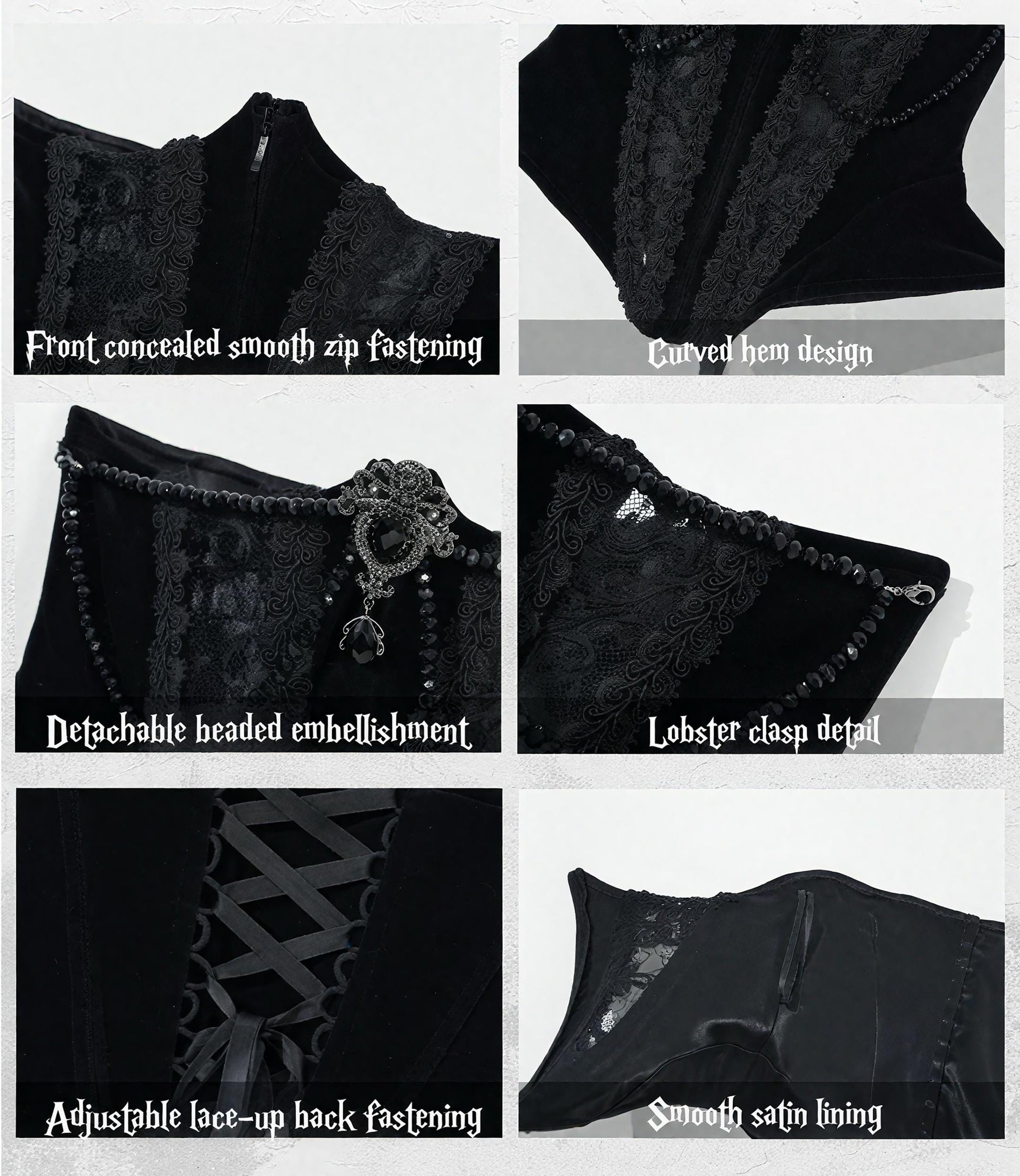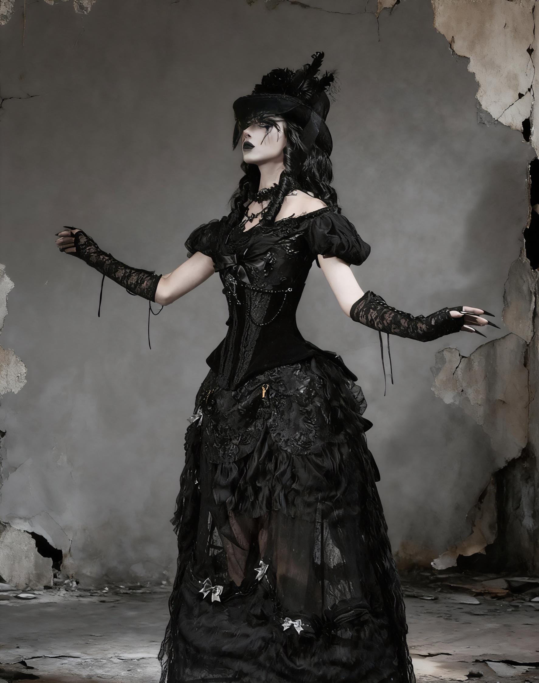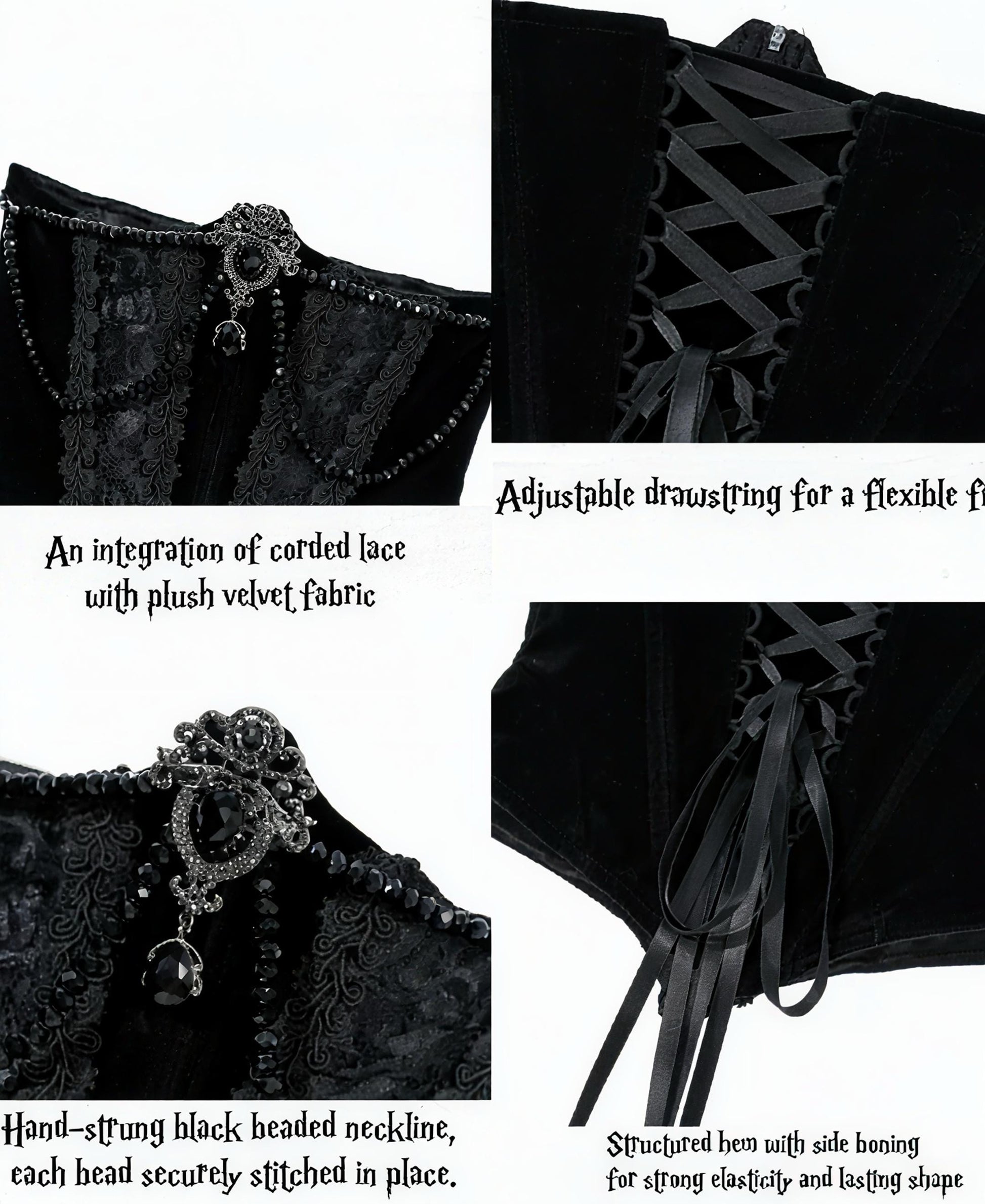 Every seam, bone, and bow is placed with precision to shape a silhouette worthy of a dark queen — regal, mysterious, and unforgettably powerful.